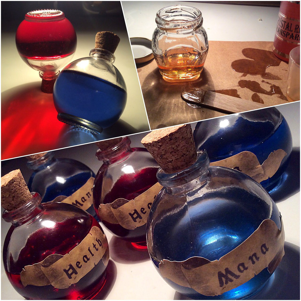 Homemade Mana & Health Potion decor bottles for your table, shelf or bookcase. Weight per potion: 100 gr / Height: 7 cm