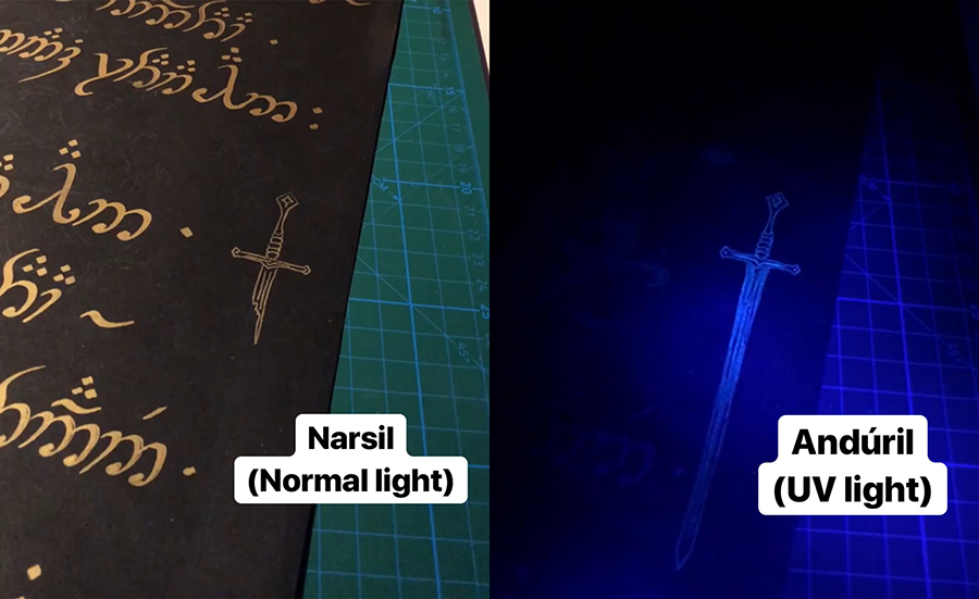 UV Tattoo Idea: Shards of Narsil in normal light, becomes Andúril under UV light (Lord of the Rings).