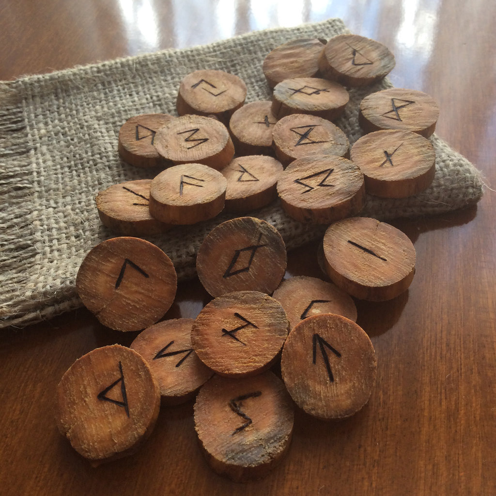 Woodcraft + Pyrography Homemade 24 wood-burned Elder Futhark runes.